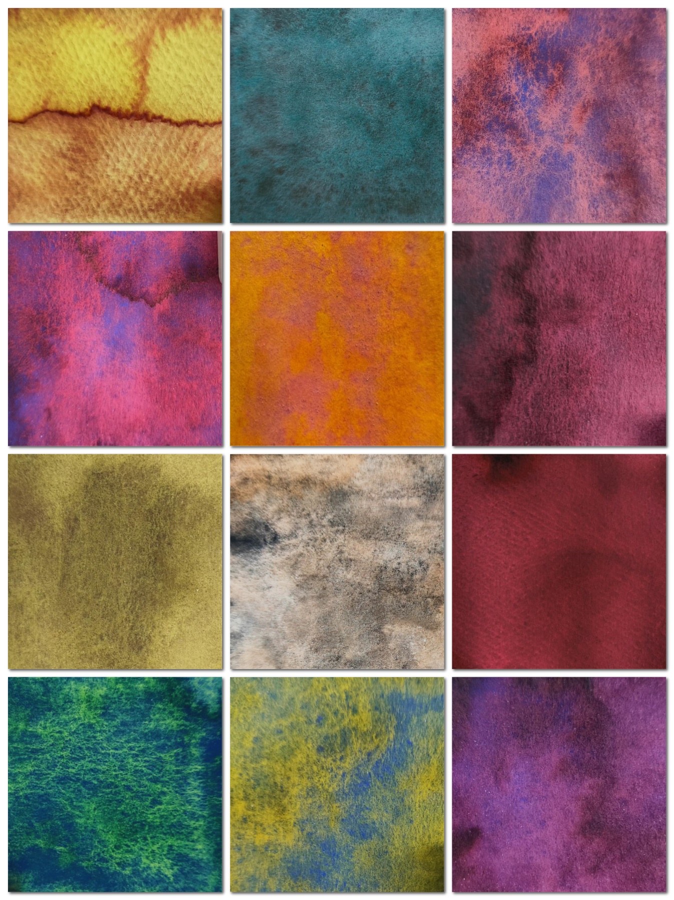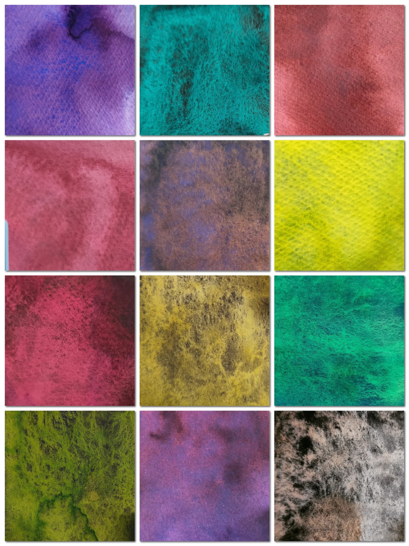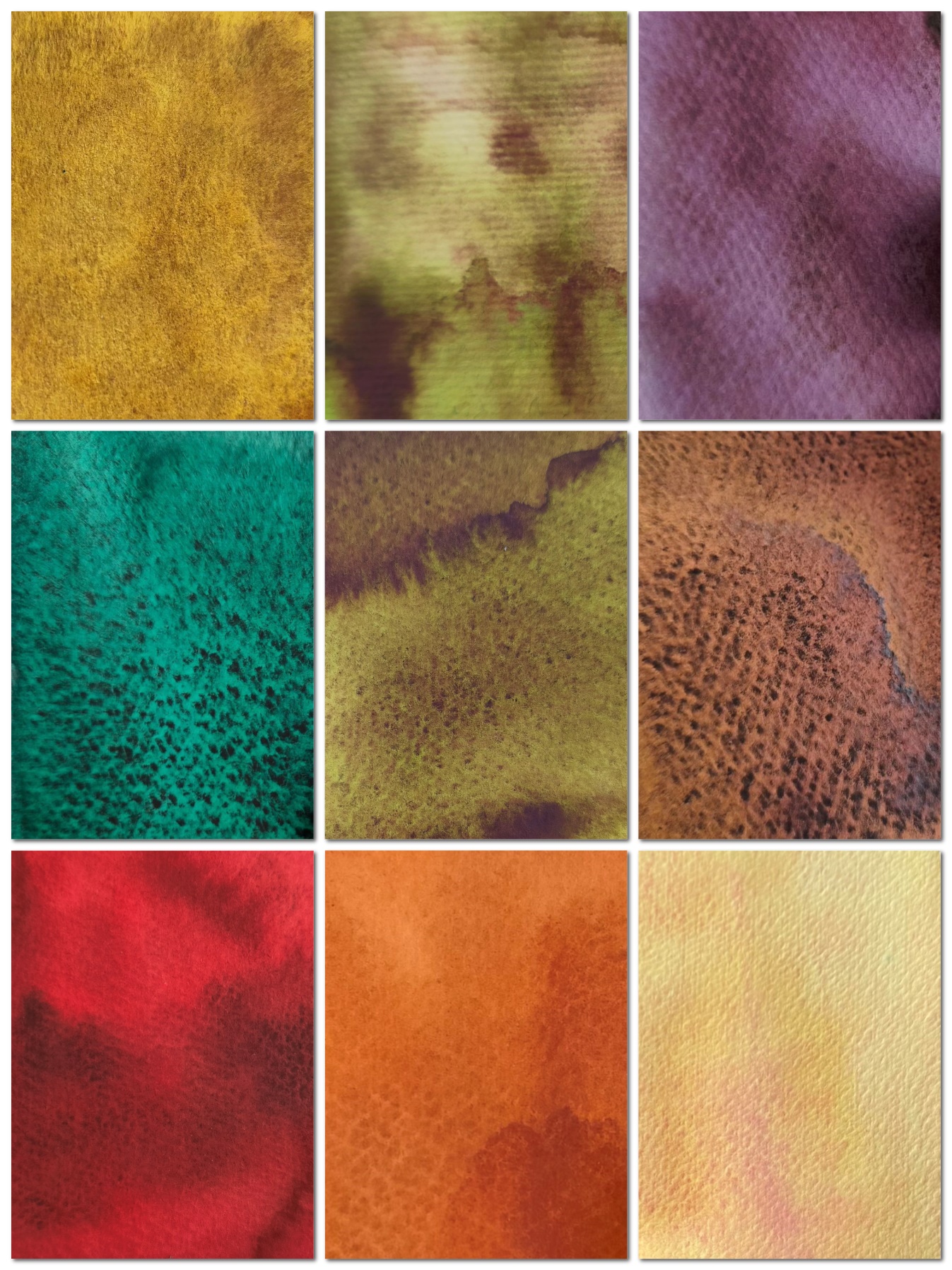Набор «Эксперименты 33 №2» в этом наборе собраны 33 акварели с довольно сильной грануляцией, разложением краски на несколько цветов.