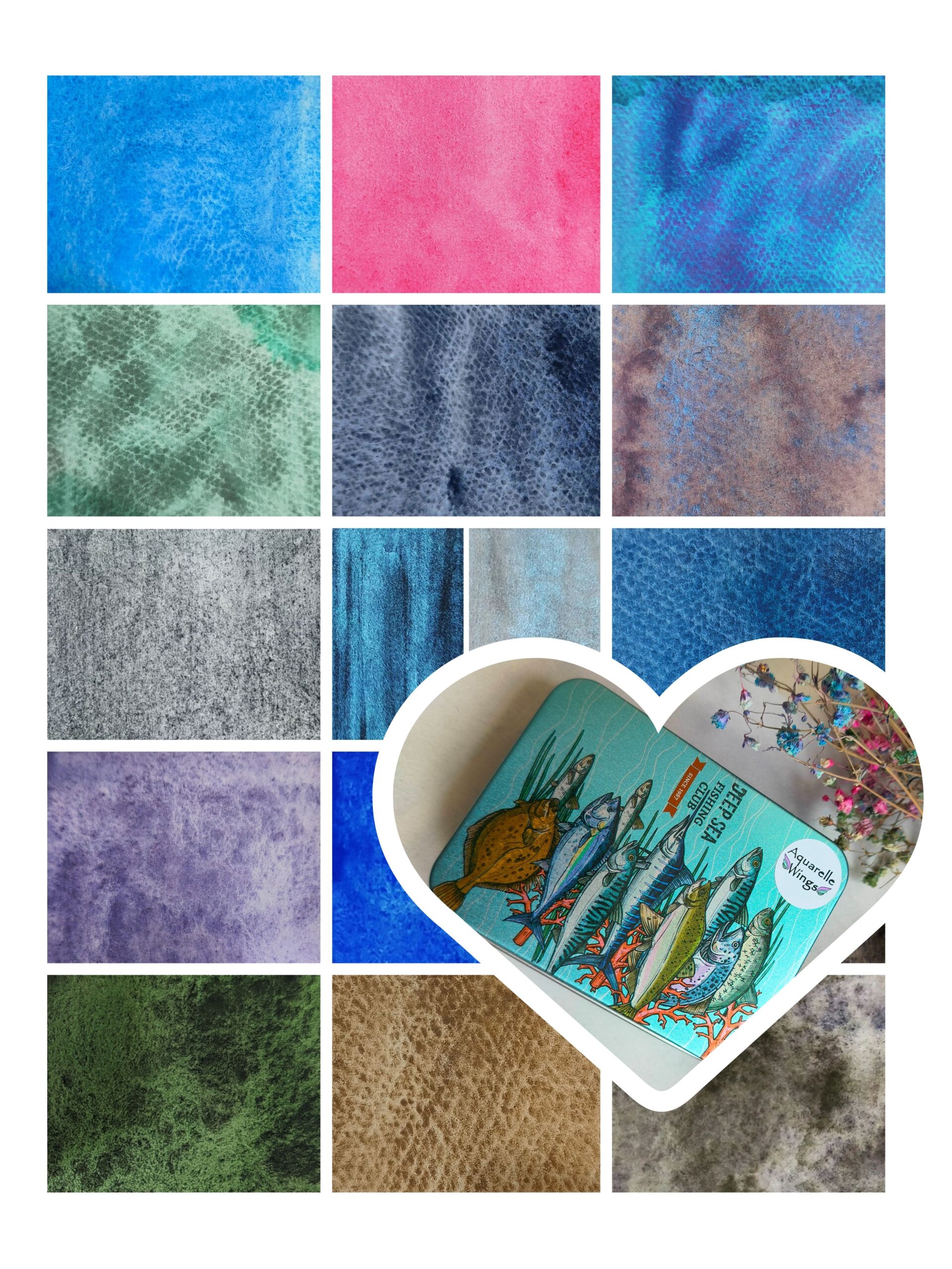 «Глубокое синее море» — набор из 15-ти акварелей ручной работы от Aquarelle Wings.
