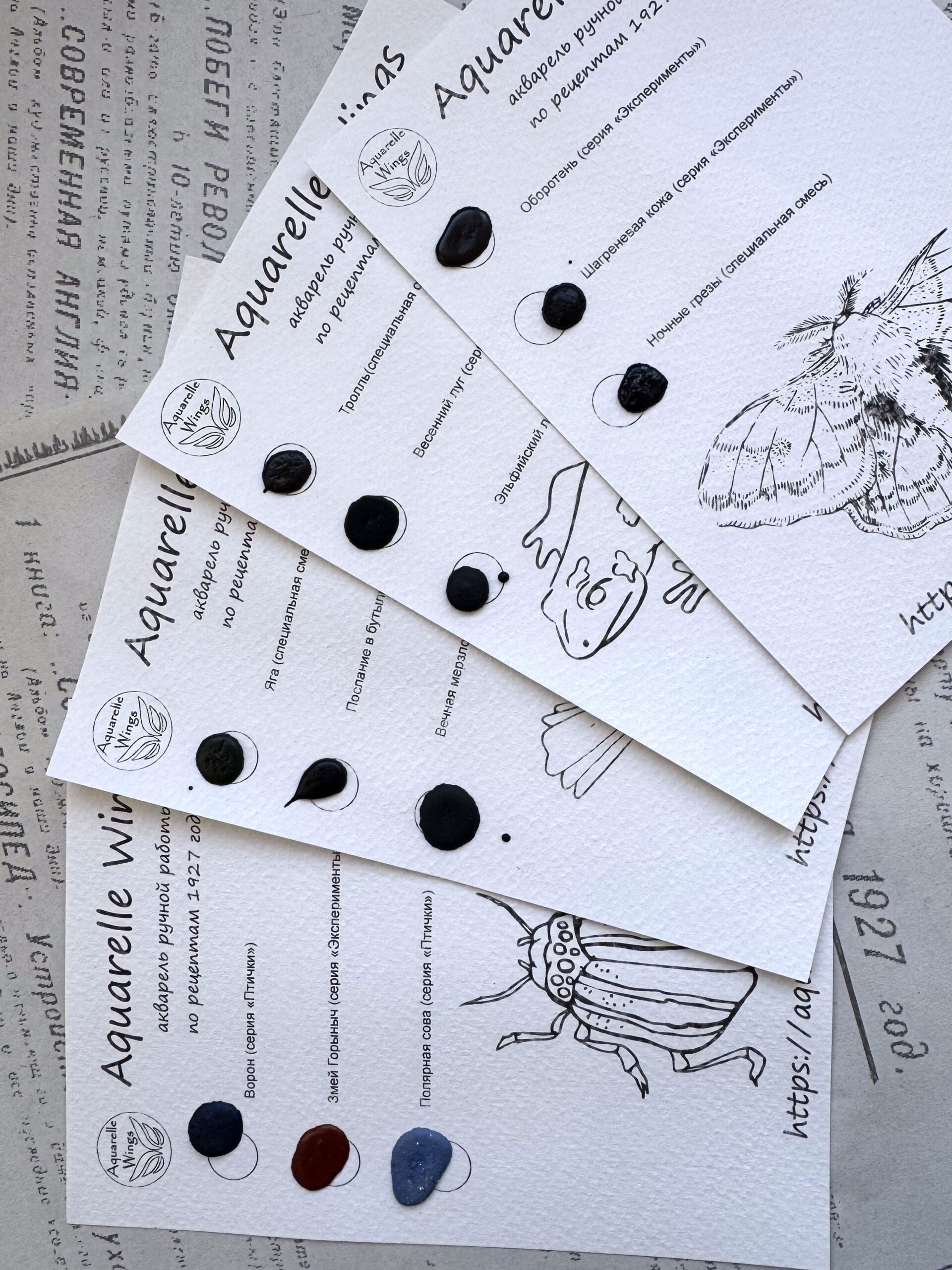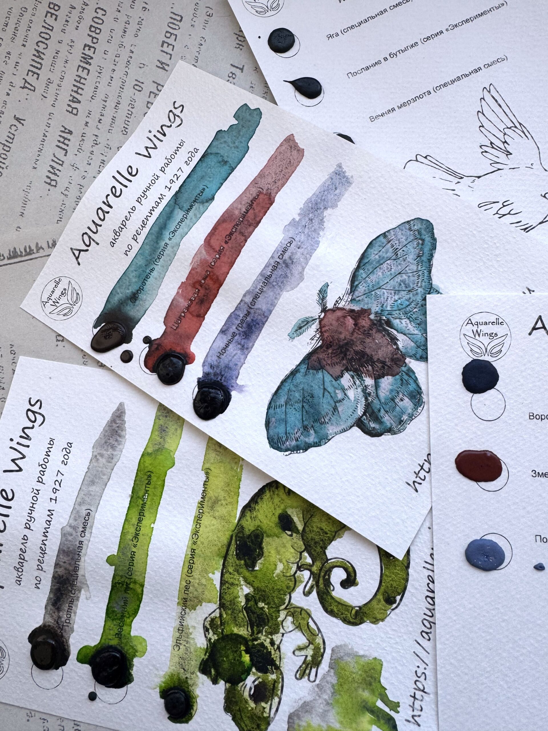Мы предлагаем попробовать акварель из разных серий — специальные смеси с грануляцией, из серии «Эксперименты» с активной грануляцией, из серии «Птички» с цветом, блеском и грануляцией.