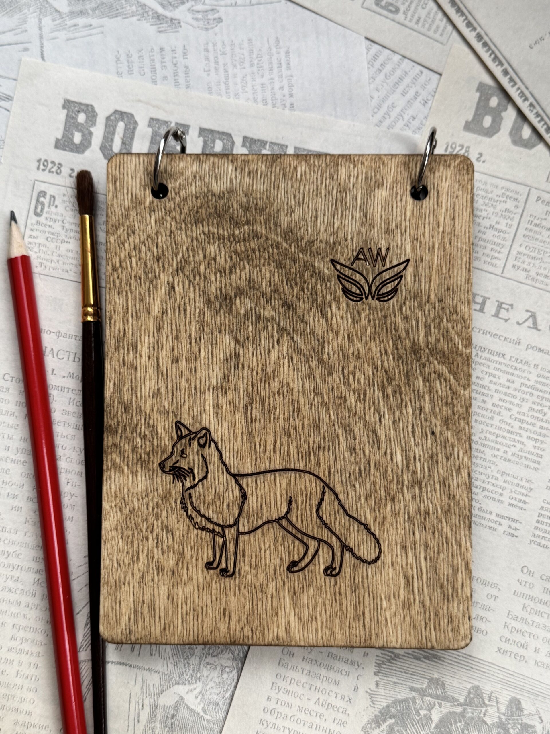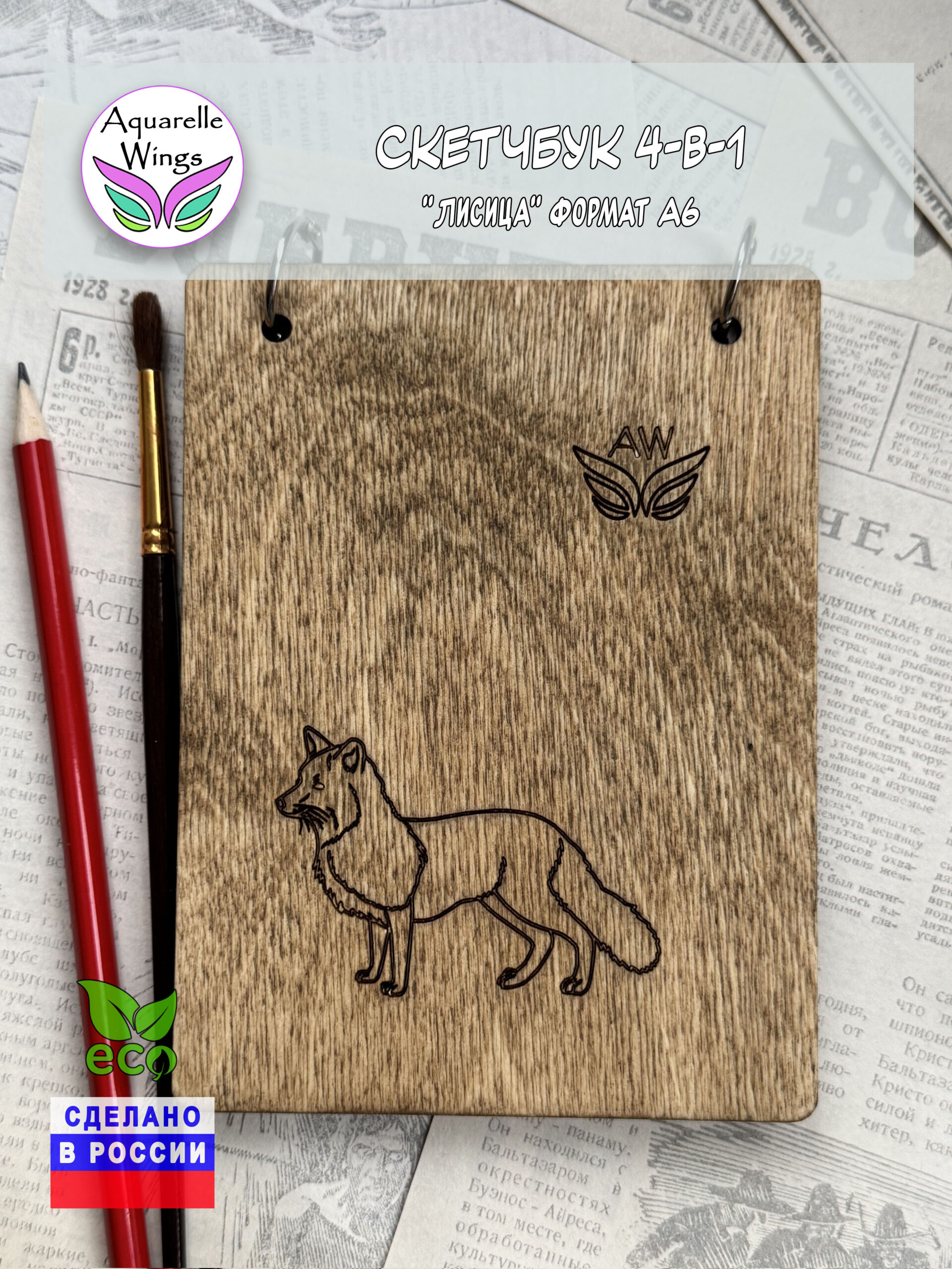 — Функция планшета: фанерная обложка, пропитанная маслом с воском, обеспечивает жёсткую основу. Бумагу можно закрепить скотчем — она не деформируется от воды. Идеально для работы вне студии и в походных условиях.