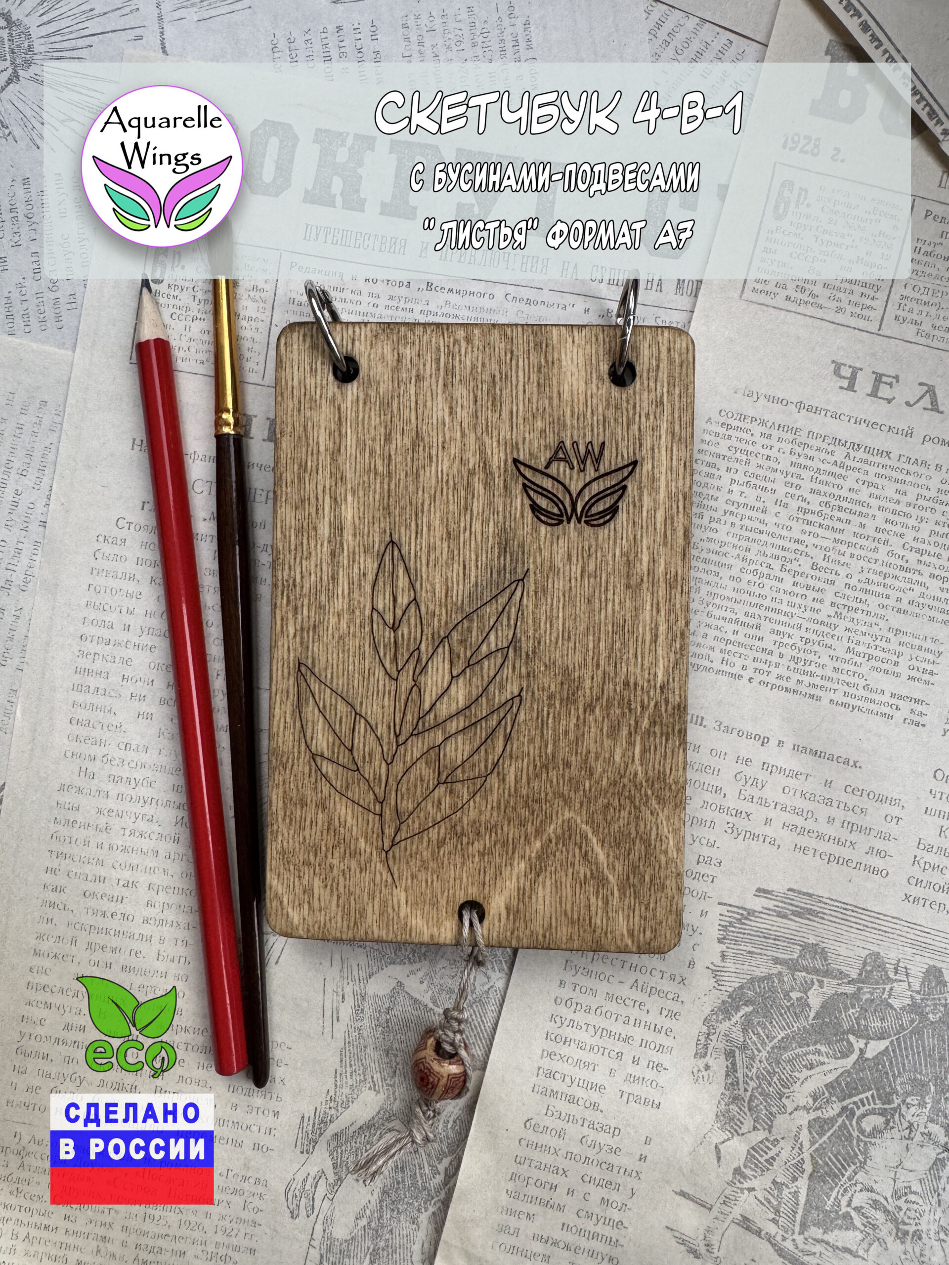 Скетчбук 4-в-1 с бусинами-подвесами «Листья» формат А7