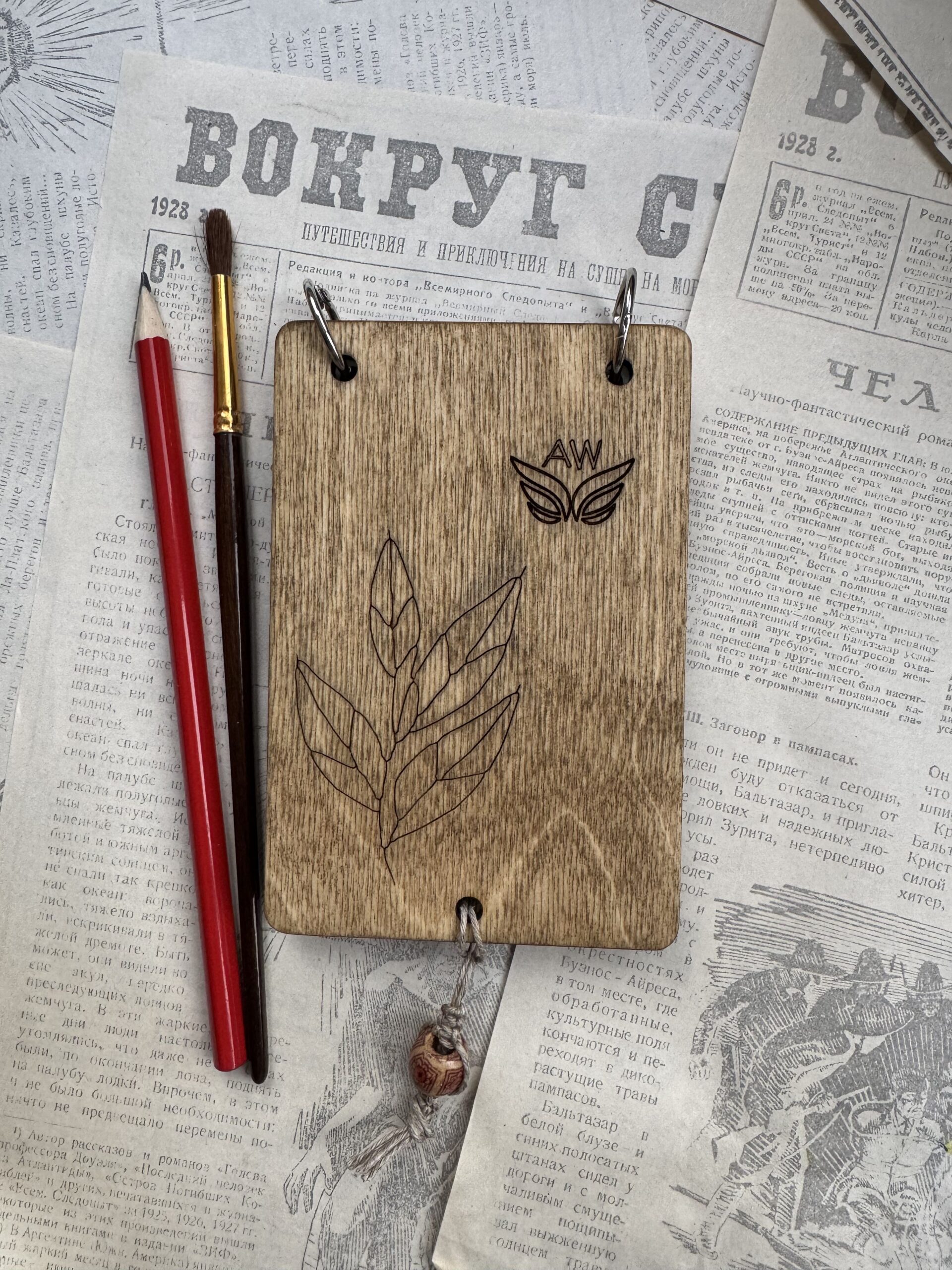 — Стильный аксессуар: деревянные бусины-подвесы не только фиксируют листы, но и придают скетчбуку неповторимый шарм.